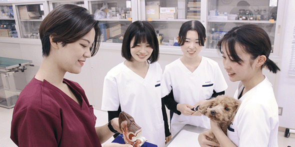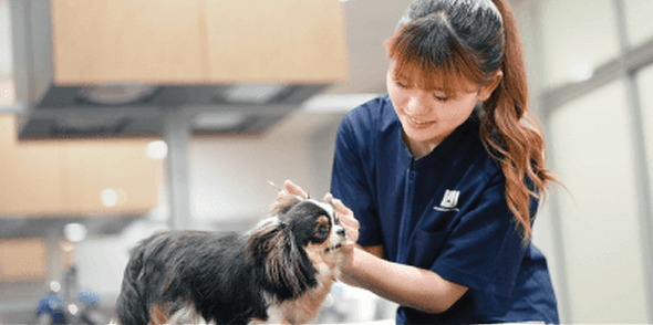 東海3県で唯一のICCキャットグルーマーライセンス認定校。 猫の特性や扱い方を専門的に学び、実習を通して確かな技術を身につけます。 猫の診療やケアに自信を持って対応できる“猫に強い動物看護師”を目指します。