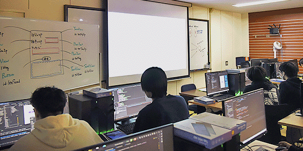 Androidアプリを実習形式で制作し、開発に必要なスキルを習得します。データ連携や画面の表示方法など、普段利用しているアプリの裏側で何が動いているかを学びます。
