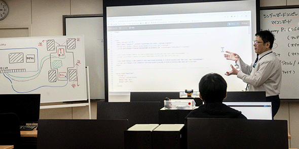 家電などの電子機器をインターネットに接続して遠隔制御するIoTの技術を学びます。身近な生活の場へITを活用する最新のプログラミングスキルの習得に挑戦します。