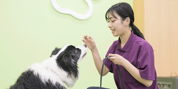 家庭犬のしつけから専門的な訓練まで幅広く学び、実習を通して確かな訓練技術と、現場で求められる対応力や判断力を身につけます。