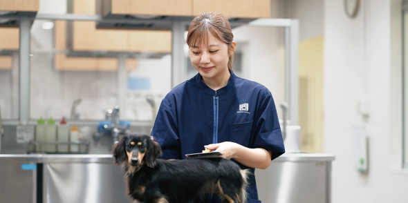 爪切りや耳そうじ、ブラッシング、シャンプーなど、犬のお手入れ技術の基本を身につけます。