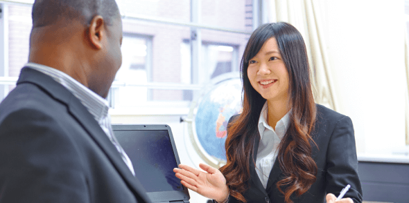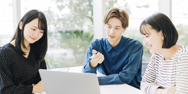 日本人の学生といっしょに授業を受け、日本語で経営やビジネスを学びます。日本の会社で働くために必要な考え方や仕事の進め方を、実践を通して身につけます。