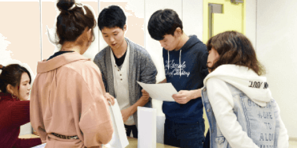 多くの人を巻き込み、コミュニケーションし、目標を達成していく力を養います。実際のケースや場面を使いながら考え成長していく実習です。