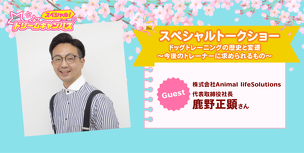 高校2年生限定の春のスペシャルイベント開催! 株式会社 Animal Life Solutionsの代表取締役社長の鹿野正顕さんが来校!ドッグトレーニングの歴史と変換についてお話ししていただきます。 【当日スケジュール】 13:00〜17:00(受付開始:12:30)
