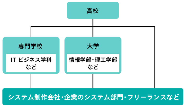プログラマーへの道は、ITや情報系の専門学校・大学でITに関する知識やプログラミングの基礎を学ぶのが一般的なルートです。中には独学でプログラミング言語を習得する人もいますが、しっかりと基礎を学びたい場合は、学校で学ぶ方が確実です。