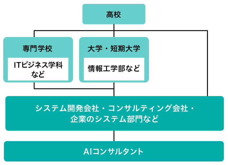 また世界的企業の場合、採用条件に大学卒が設定されている場合もあります。新卒で活躍したい場合は大学の進学が必須ですが、ベンチャー企業や中小企業などで経験やスキルを磨いてから転職した方が年収がいい場合もあり、この企業に絶対入りたい!!という希望でなければ専門学校でも十分AIコンサルタントを目指せるでしょう。