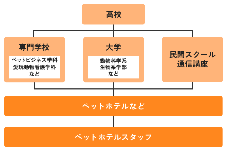 ペットホテルスタッフになるには、専門学校や大学で動物の生態、行動学、健康管理について学ぶのが近道です。特に専門学校では、実習を通して実際の動物の扱い方(ハンドリング)や、飼い主様への接客マナーを総合的に習得できるため、採用時に高く評価されます。