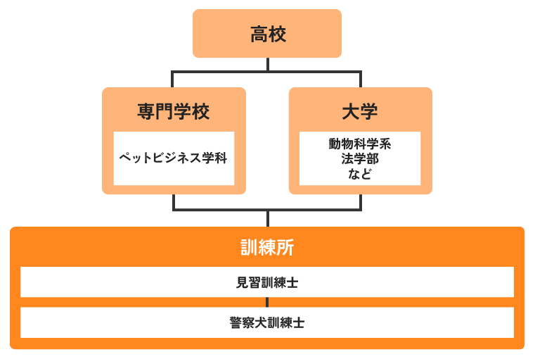 警察犬訓練士になるには、専門学校や大学で犬の行動学、心理学、トレーニングの基礎を学ぶのが一般的です。卒業後は民間の訓練所に弟子入り(就職)して修行を積むか、各都道府県の警察官採用試験に合格し、鑑識課などの専門部署を目指すルートがあります。
